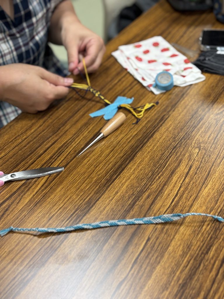 こきんちゃんも来てくれてミツバチ柄、いやハート柄のミサンガを編んで見せてくれました